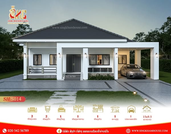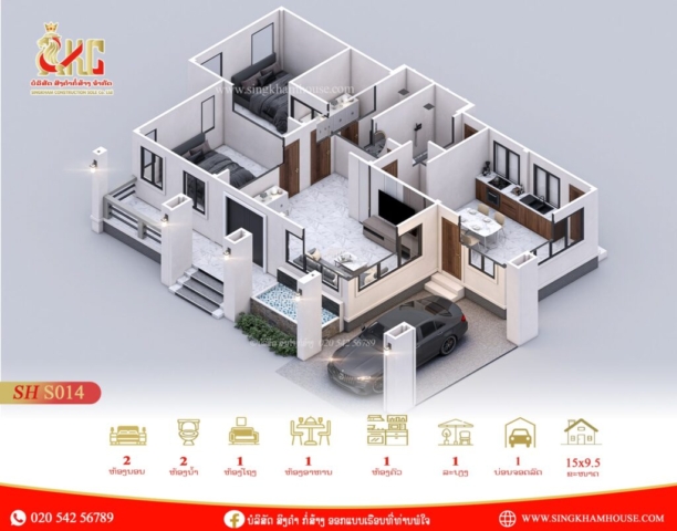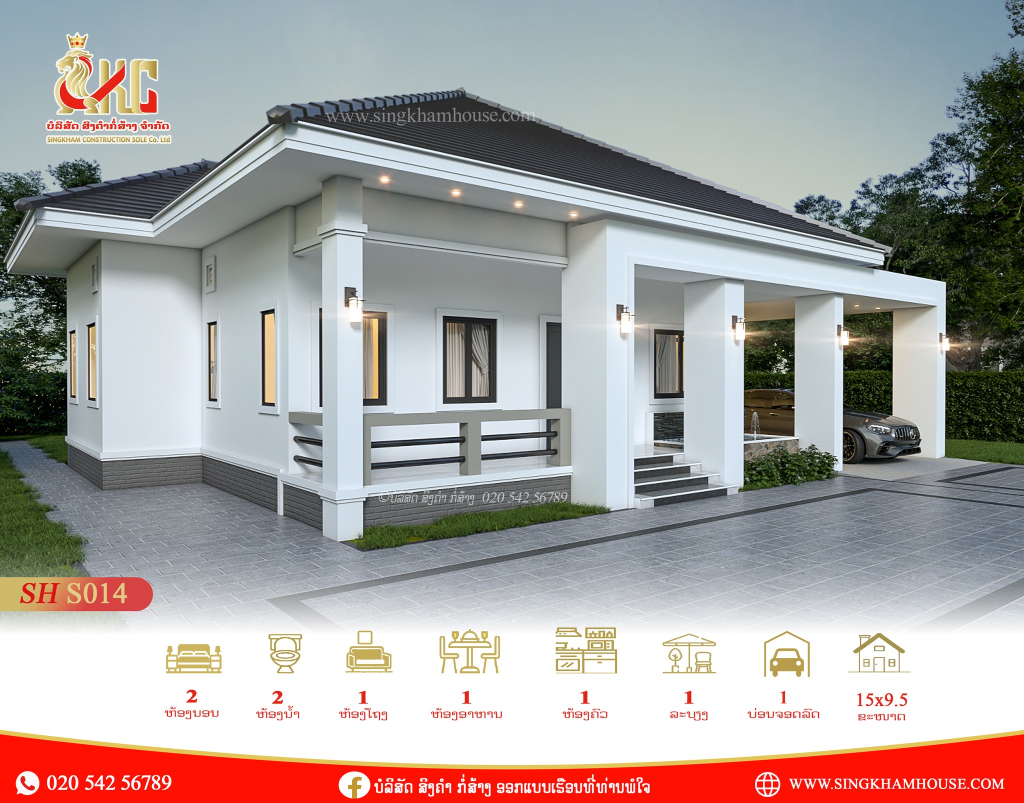 ຂະໜາດຄວາມກ້ວງແລະຄວາມຍາວ 15 x 9.5 ແມັດ.